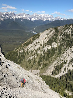 | Final ridge climb to south summit turned out be fun and easy fourth class climbing on solid rock |
