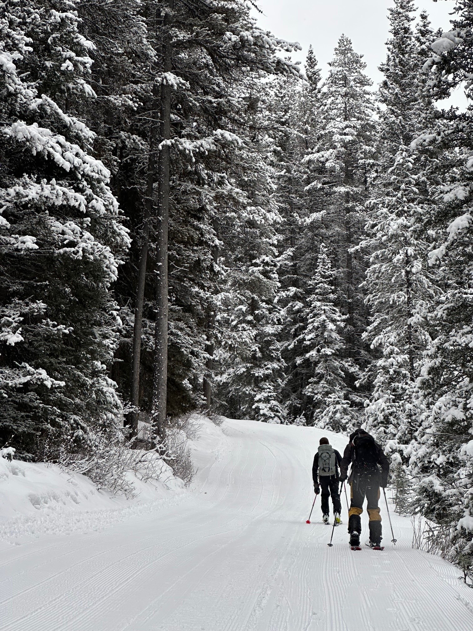 down the regular Piper Creek summer trail, a but scary on ski out with the narrow trees! Great Opal